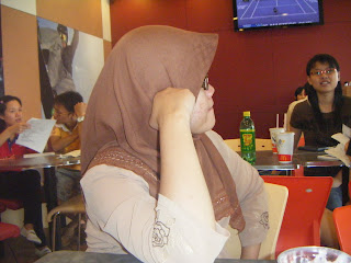 Cam biase bile time ari Jumaat waktu rehat pn pnjg..ktorang pn gie la cri tmpt makan yg lbih jauh dr biase..hehehe..min n aien plan nk lunch kt Mc D..so aku pn pe lg..ikut je ler..cam biase ktorang mrayap smpai ke Mc D Nusa Bestari..hehehe..gie ber4 (aku, min, aien + baby aien..hehehe)..ktorang kurang lg sorang geng makan la..mane Sue? emmmm..lupe plak..ari nie kn ari Jumaat die balik umah la tu..xpe la next round ko boleh join kitorang ae..skang nie ktorang gie makan dulu..hehehe