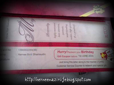 Seperti yang kami rancang, hari Sabtu lepas kami nak ke AEON Bukit Indah.. semata-mata untuk menebus hadiah hari jadi dari Juso.. selepas daripada tu kami nak ke Birthday Party pula.. dengan semangat jayanya saya bersiap-siap.. sesampai saja kami di sana, kami terus menuju ke Kaunter Perkhidmatan.. ramai pula orang yang beratur masing-masing nak menebus hadiah mata ganjaran J-Card..