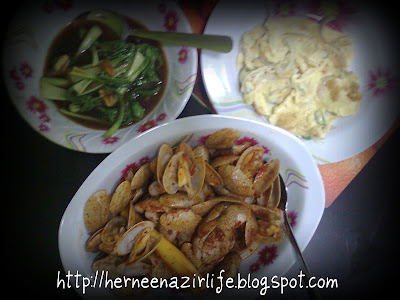 Semalam balik ke rumah saya singgah ke kedai kerana stok lauk pauk dah habis..setelah memikirkan apa yang patut di masak.. saya membeli sedikit lala dan sawi jepun.. beli pun tak banyak cukup untuk kami berdua.. singgah ke rumah mak sekejap kononnya nak mintak 2 3 batang serai.. rupanya pokok serai mak dah lama berkubur..hehehe~ terpaksalah ke kedai semula.. sempat juga saya tapaw hati pari yang mak masak..emmm sedapnya.. sesampai di rumah.. bersilat saya di dapur.. lala saya goreng sambal dan sawi jepun pula digoreng bersama sos tiram.. tak sampai 20 minit semuanya dah siap.. pelik juga saya.. kenapa kalau di rumah mak dulu rasanya lama sangat duduk di dapur.. tapi bila di rumah sendiri.. campak-campak perencah terus siap..hehehe~ En. Nazir kata sebab di rumah sendiri kita tahu yang kita tak cukup masa.. banyak kerja lain yang perlu di buat.. betul juga kan.. En. Nazir macam biasa tugas dia menanak nasi.. tiba-tiba dia nak makan telur dadar.. jadi saya dengan zalimnya menyuruh En. Nazir menggoreng telur sendiri.. manakala saya terus mandi..hehehe~ lepas semuanya siap kami pun menjamu selera.. manis sungguh rasa lala ni.. mesti lala yang baru dan segar dari laut.. alhamdulillah rezeki dari Allah.. semua makanan habis kami kerjakan.. jadi tiadalah pembaziran..
