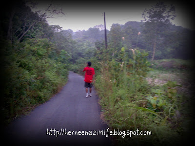 Entry yang agak lapuk dari saya. Kesian En. Nazir dah 2 minggu dia bluetooth gambar dia berjogging ni pada saya. Tapi siteri dia ni sangat malas meng’update’. 2 minggu lepas tiba-tiba En. Nazir baru terperasan kegemukkan yang melanda. Dia pun rancang nak berjogging pagi Jumaat tu dan mengajak sepupu saya Ider untuk sama-sama jogging. Saya ingatkan dia jogging sekadar di kawasan perumahan kami saja. Rupa-rupanya sampai ke kebun orang pun dia redah.