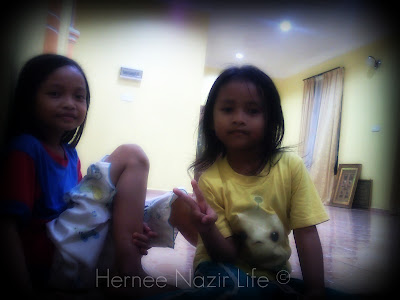 balik dari ronda-ronda, saya melayan minah berdua ni, umi dan wahida main puzzle. en.nazir melayan anak buah lelaki main chess. penat main puzzle yang dah tak cukup tu, saya join MIL dan SIL berbual. lepas tu saya layan tv cerita mukhsin dengan en. nazir. sedar-sedar MIL kejut, rupanya kami tak tengok tv. tv yang tengok kami. hehehehe~