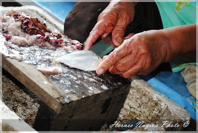 Inilah dia Mak Ngah, yang memang mahir dalam membuat ikan kering. Ikan2 segar dari laut akan dibuat ikan kering sebelum dijual dengan harga RM10 sekilogram. Sesiapa yang nak beli boleh bagitau saya, insya’Allah saya boleh bawa jumpa Mak Ngah.