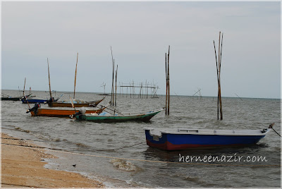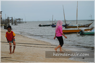 Air baru je nak pasang petang masa ni. Saya rasa macam nak ajak Wahida mandi laut je, tapi kata En. Nazir, nanti orang kampung pelik pula tengok ada orang mandi manda hehehe~