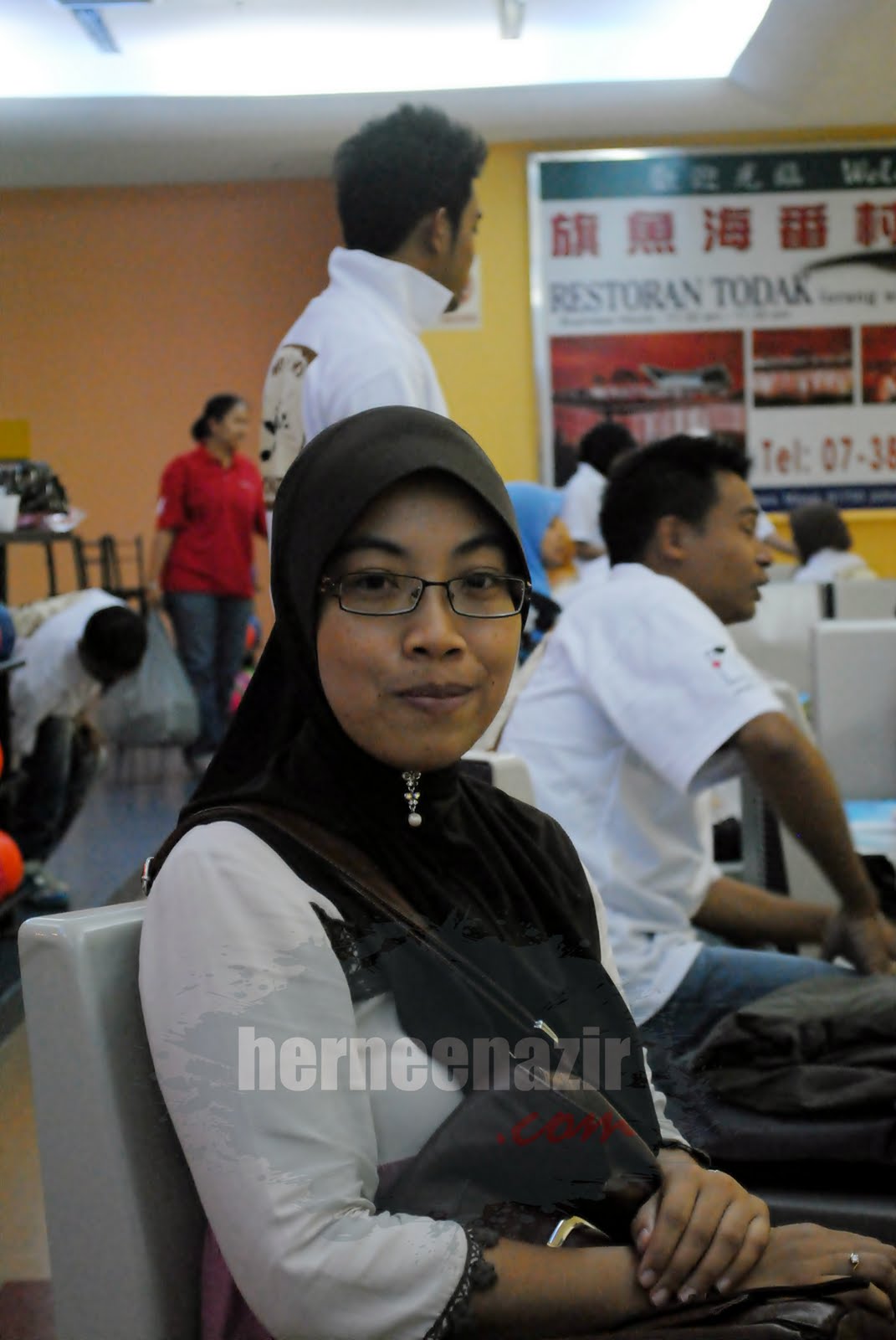 Part gaya saya bagi dia markah 101% hahahaha. Gaya je la, lain2 belum boleh bagi gred ke mahu pun bintang2 bekerlipan lagi. Kena banyak lagi berlatih ya En. Nazir. Tapi tak ada lah teruk sangat cara dia main bowling ni. Sepanjang kenal sampai kahwin, baru kali ni saya tengok dia main bowling. Sekarang dia lebih banyak melayan badminton mungkin dia nak jadi pesaing Lee Chong Wei. Selamat datang ke dunia badminton Encik Lee Chong Kak ;p