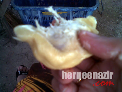 Dah lama gila tak makan durian. Bukan kata pakcik mengidam tu je yang mengidam, saya pun dah jangkit. On the way nak ke rumah Pak Ajis, sempat telan air liur 500 kali tu ngeeee.. Nikmatnya dapat makan durian. Siap makan kat situ, jadi senang sikit tak payah menyerak kat rumah ;p