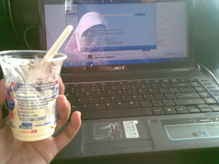 .. ni la aktiviti saya lepas office hour. Nak duduk sorang2 kat office memang rasa SEGAN gila la kan. Jadi saya siap sedia dengan lappy dan jajan2 duduk merempat kat lobby. Ditemani aiskrim Cravio magnolia dan asam. Tetiba teringin nak makan asam (jangan fikir yang bukan2.. ini nafsu makan semata2 ;p)