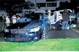Kereta BMW milik Sosilawati, 47, ditemui di Pangsapuri Angsana USJ1 di sini diikuti kereta milik peguamnya di sebuah kawasan perumahan berhadapan Dorsett Hotel Subang Jaya.