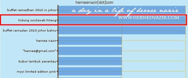 Saja check keyword Nuffnang, tiba2 ada orang mencari “HIDUNG SOSILAWATI HILANG” lawak apakah yang orang ni nak buat saat2 polis tengah menjejaki kehilangan. Kalau dah Sosilawati hilang confirmlah dengan hidung2 dia sekali hilang, betul tak?