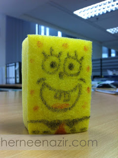 ‘Budak Tak Ada Kerja’ ni ada 2 orang seopis dengan saya (klu: 2 nama yang berebut dan main ngelat nak menang ‘si kuat bebel’ no 2 & 3). Tengok tu dia rembatnya sponge kat pantry, lepas tu di dekonya jadi sponge bob. Patutlah hilang sponge satu kan. Hampeh betul 🙂 Bila boss nampak dan soal saya, saya dengan baik hatinya mengcover kawan2 kata ‘diorang bawak sponge sendiri’ ciskek betul!