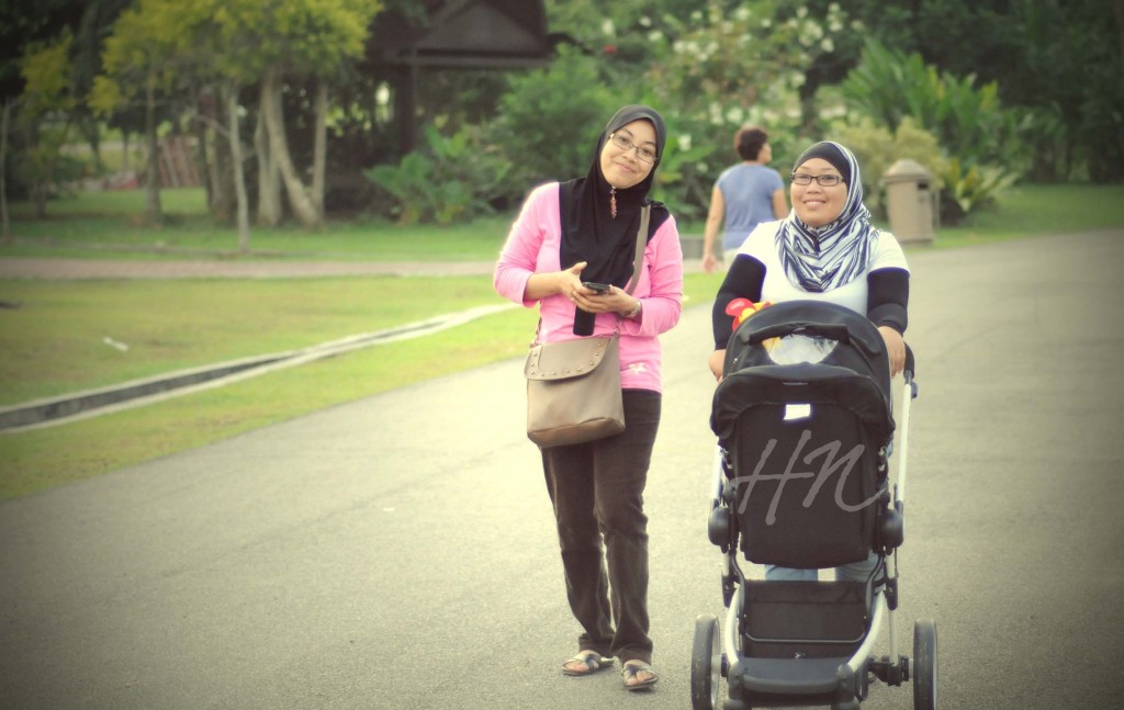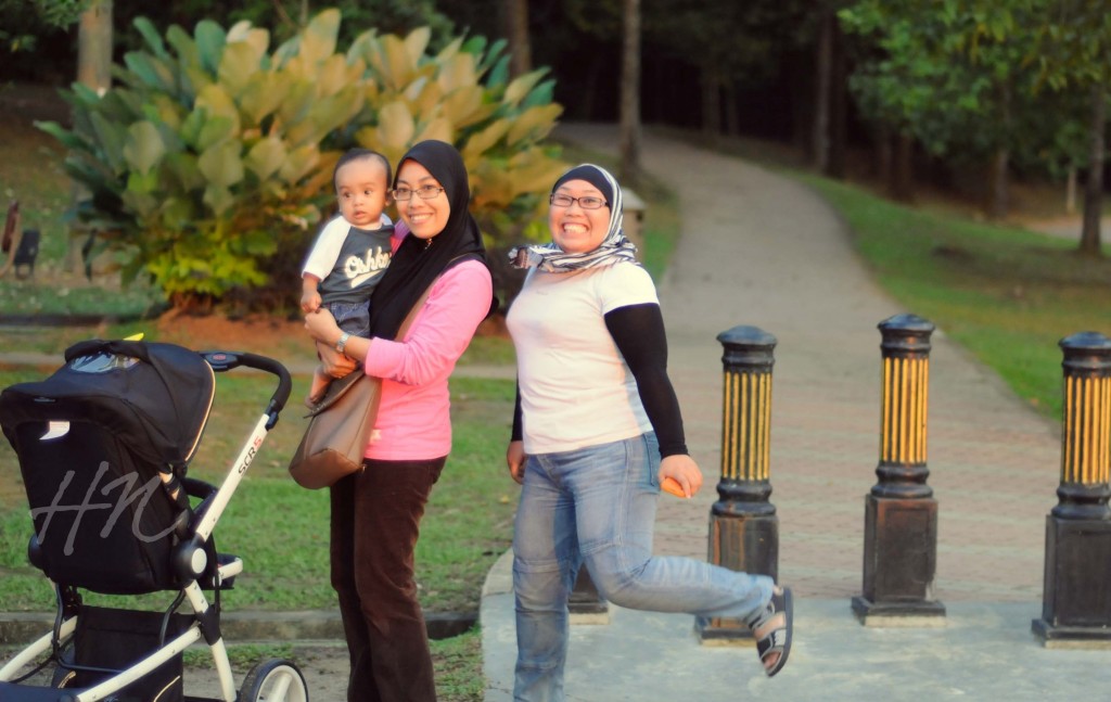 Pusing punya pusing punya pusing.. terjumpa Ibu Zura Ilham daaaaaaaaa.. Tak sangka diorang berjogging tempat yang sama. Bila tengok orang berjogging, tetiba saya teringat sport shoes pink saya kat rumah tu.. apa malang nasib dia terperuk dalam gobok kasut. Jangan risau wahai sport shoes pink ku.. satu hari nanti aku akan gunakan ko semula 😉 tapi satu hari nanti tu tak tahulah bila masanya ekeke~