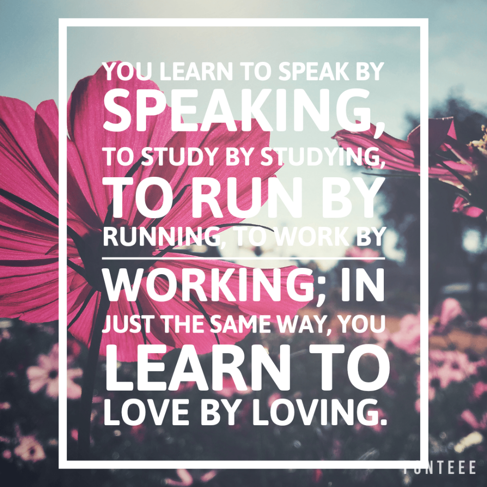 “You learn to speak by speaking, to study by studying, to run by running, to work by working; in just the same way, you learn to love by loving”