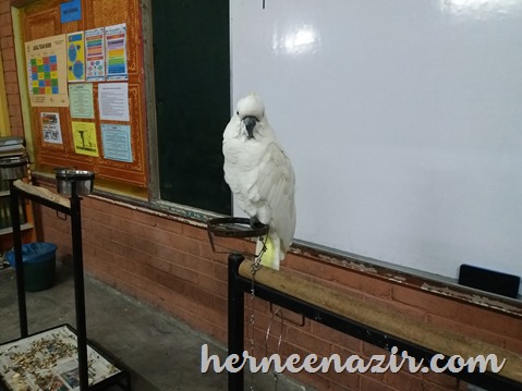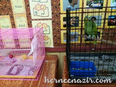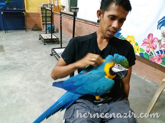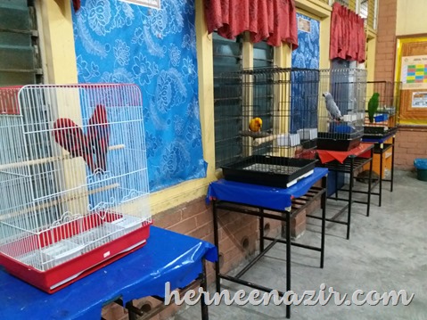 Banyak juga burung. Burung yang cantik ni mood dia tak baik. Dia mogok tak nak bercakap sebab orang tu kata dari pagi budak-budak yang datang asyik kacau ekor dia. Tu yang dia bad mood sebab dia tak suka ekor kena kacau. Pandai betul kan hehehe.