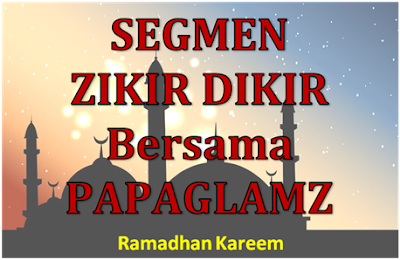 Salam ramadhan buat semua pembaca Papaglamz yang aku sayangi. Sayang lebih sikit untuk sesiapa yang sudi baca entri segmen aku kali ni. Hehehe. Ok la, straight to the point. Bersempena bulan penuh barokah ini, aku tergerak hati untuk menganjurkan segmen simple untuk korang semua. Segmen ZIKIR DIKIR bersama Papaglamz. Aku saje je anjurkan segmen sebegini rupa sekadar hendak membawa kita semua selain dari blogwalking tu terasa ada pengisian la sikit kan. Insyallah. Jangan lupa join. Ikuti syarat-syarat yang mudah dengan tertib tau…!!!!