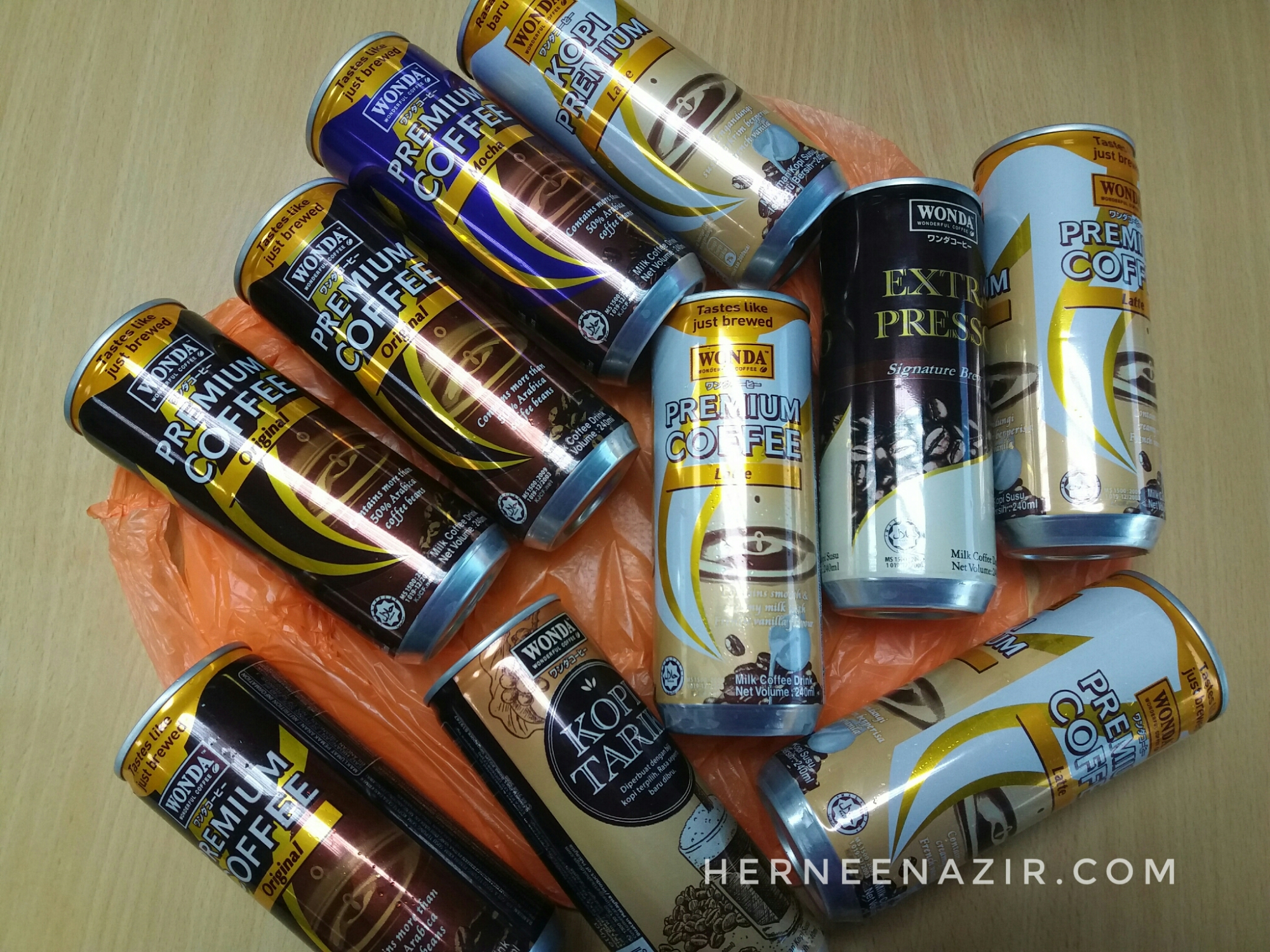 Semalam rezeki Mama Cu belanja 10 tin Wonda Coffee. Eh bukan semua Ummi minum tau. Ummi ajak kawan-kawan office minum sekali termasuklah Pak Etot Yap hahaha. Akhirnya dapat juga rasa yang Mocha hehe. Banyak-banyak flavour Ummi rasa paling suka Latte kot. Eh entah la semua sedap kot. Tak tahu nak cakap mana satu paling sedap sebab belum expert nak judge cik kopi hahaha.