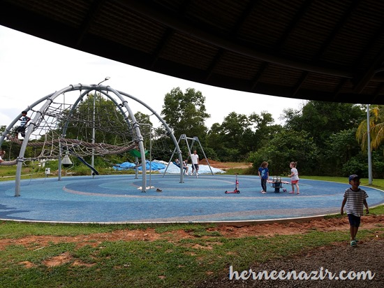 Mula-mula senyum, gelak.. sekali Babah dengki pusing lama-lama terus meraung si adik tu. Jalan terhuyung-hayang hahaha. Lepas main kat play ground kami beransur la balik.