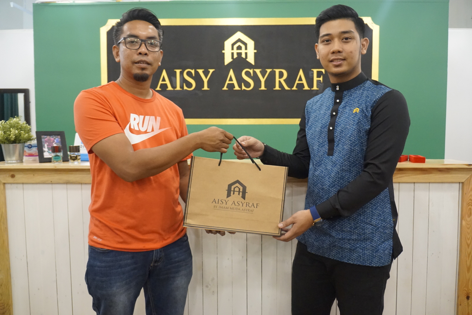 Sebelum meninggalkan Butik Aisy Asyraf sempat juga Babah bergambar dengan Mizan staff AIsy Asyraf. Thanks ya Mizan and friends atas layanan vvip yang korang berikan semasa kami ke sini. Minta maaf kalau anak-anak akak but onar sepanjang berada di butik. Insha Allah akak dan abang akan datang lagi ke sini sebabnya Babah nak beli perfume pula hehe.