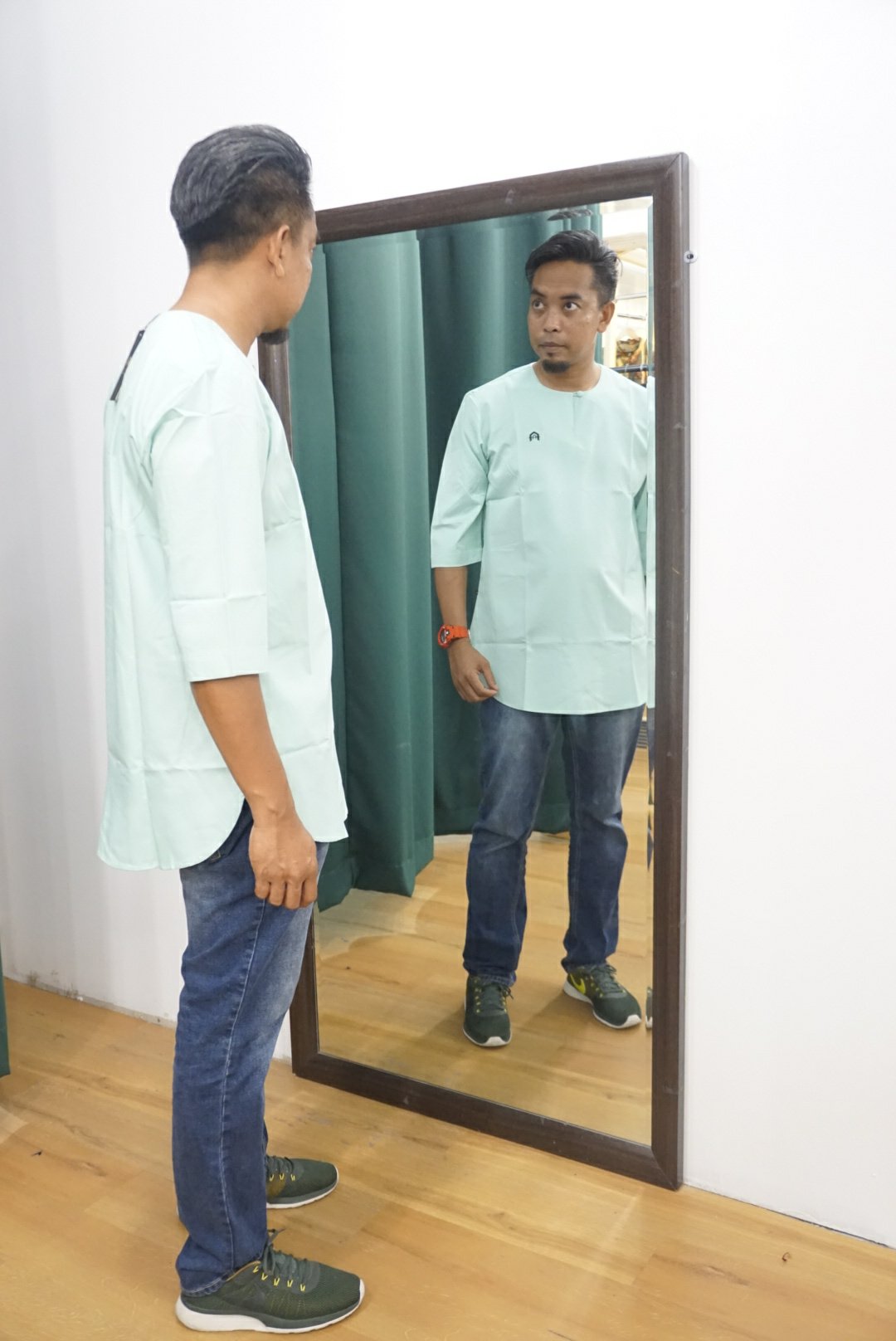 Setelah puas mencuba menelek akhirnya Babah memilih Kurta Rindu Aisy Asyraf berwarna Mint Green. Babah kata Kurta RIndu ni nampak smart. Kalau IM Asyraf perlukan model sambilan boleh panggil Babah Ilham ya haha.