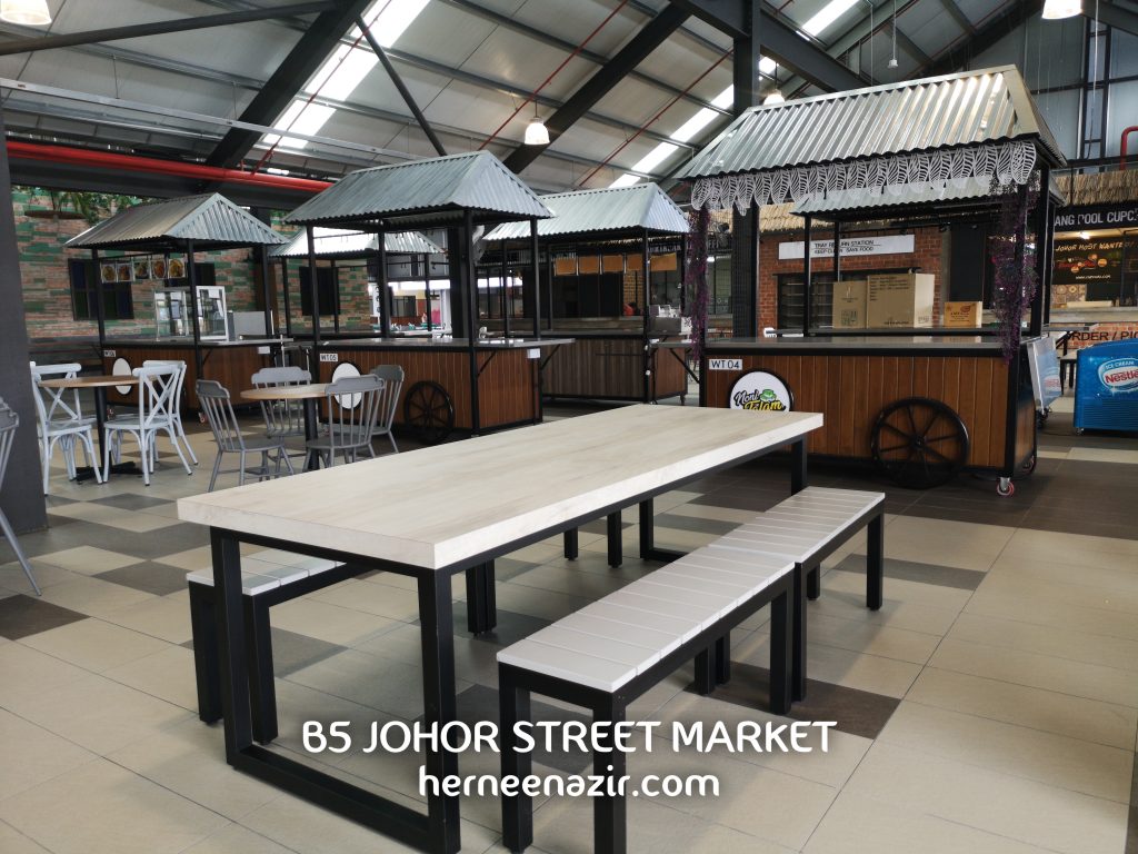 B5 Johor Street Market diinspirasikan dari Queen Victoria Market yang bakal menjadi lokasi ikonik bagi pelancong dalam dan luar negara. Reka bentuk dan suasana keseluruhannya adalah berdasarkan ciri warisan dan keindahan Johor yang akan membawa anda kembali ke Johor Lama. Serius memang cantik dan menarik sangat konsep yang telah diketengahkan. Memang cukup santai.