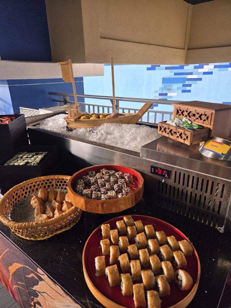 Signature Dishes & Live Station – Slow Roast Whole Lamb, Mee Tarik, Claypot Asam Pedas, Live Teppanyaki & Live Sushi. Tengok sendiri diorang buat Mee Tarik from scratch. Live sushi tu banyak betul pilihan, pastinya buat Ummi repeat banyak kali. Tiga Abdul ni pun sama, memang diorang peminat sushi.